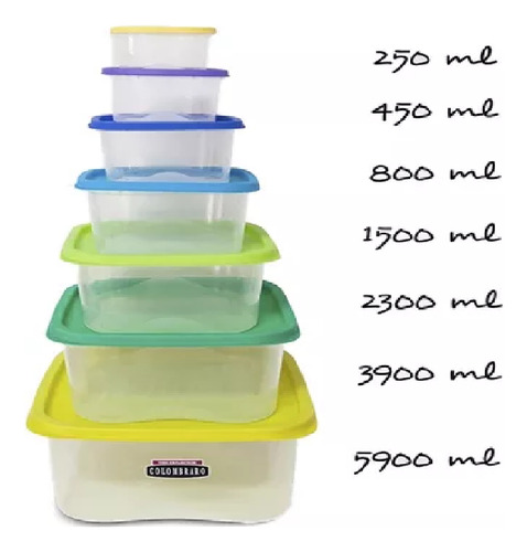 CONTENEDOR CUADRADO MULTICOLOR SET X 7 HERMETICO COLOMBRARO